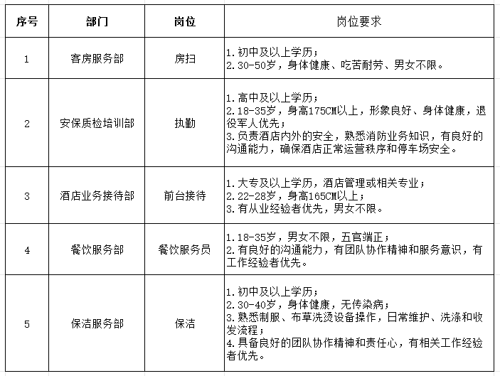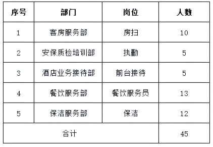根據工作需要,鑫富源人力資源集團公開招聘45名酒店工作人員,并外派至汾酒國際大酒店工作,現將有關事項公告如下: